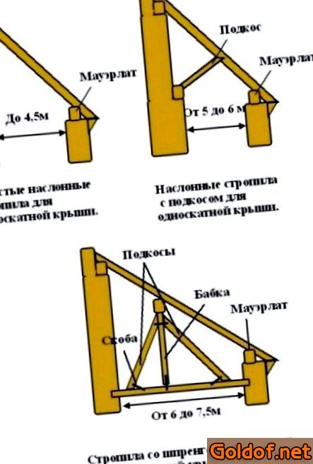 В случае если баня строится маленького размера, с расстоянием между обратными стенами не больше 4,5 метров, то можно устанавливать стропила без дополнительных опорных столбов. Стропила большей длины в обязательном порядке нужно подпереть, чтобы не допустить в дальнейшем их провисания также обрушения. Концы стропил располагают в особенных пазах на мауэрлате с шагом равным примерно одному метру.