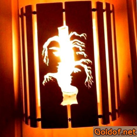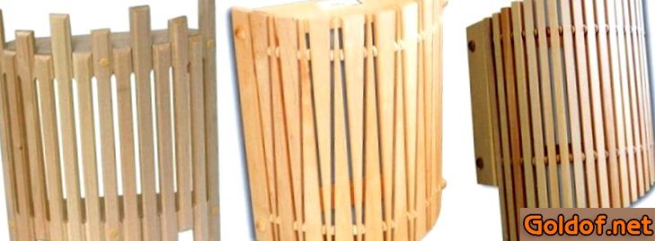 база (каркас) отличается формой зависимо от будущего размещения осветительного прибора: если вы планируете сделать его стенным, то деталь имеет прямоугольную или полукруглую форму, в случае если же осветительный прибор будет угловым, тогда форма детали должна быть поближе к треугольной или трапециевидной длину реек рассчитываем под определенную решетку (зависимо от величины осветительного прибора, который будет находиться за ней), их острые края закругляем, а поверхность основательно шлифуем — так и вид более прекрасный, и безопасность на высоте планки крепим к каркасу средством обычных шурупов, при этом изнутри, снаружи их не должно быть приметно — сами осознаете, что с этими стальными деталями происходит при рабочей температуре парной, так что при случайном прикосновении можно взять очень не считая того осязаемый ожог