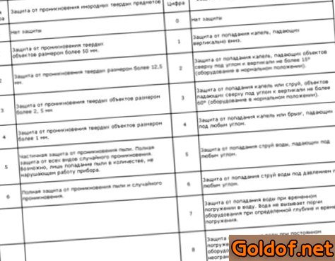 степень защищенности электроприбора (осветительного прибора) от жёстких частиц и воды, которая указывается на упаковке или корпусе осветительного прибора и смотрится как сочетание букв IP, значащих интернациональную защиту, и цифр, показывающих на ее степень: у осветительных приборов для парной маркировка должна быть от IP54 и выше