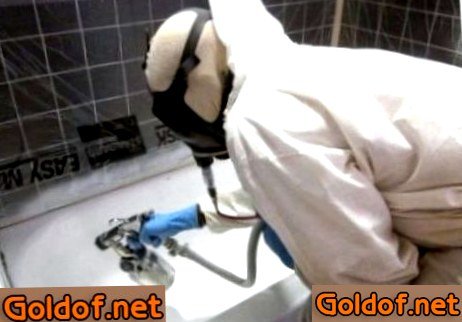 - К тому же краскопульт должен быть опытным, в другом случае он может свободно сломаться в самый неподходящий момент, так как сама краска довольно густая. Использовать пульверизатор дома не целенаправлено еще вследствие того что такой метод нанесения окрасит не только ванну, да и прилежащие поверхности.