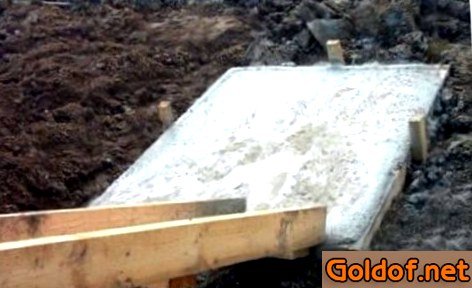 - Заливаем бетон слоем 20 см. Готовим раствор по такому рецепту: один часть цемента, 2,5 части песка, четыре части маленького щебня.