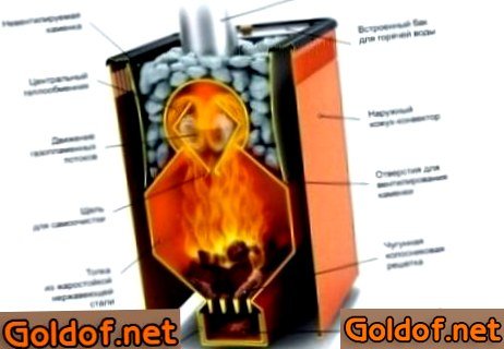 В случае если бак встроен, то непосредственно происходит контакт пламени с его дном, вместе с этим конструкция не находится в зависимости от способа вывода дыма. Чтобы взять воду из бака, встроенного в печь, нужно зачерпнуть воду через крышку бака или через интегрированный в бак кран, куда вода попадает самотеком.