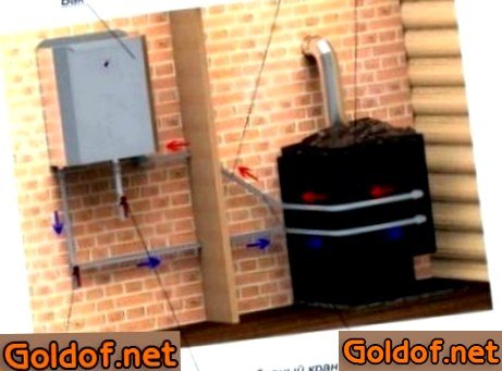Схема бака для бани, который находится на трубе, отличается рядом преимуществ. Основное из их — устранение такой ситуации, как попадание угарного газа в помещения, из-за того, что бак является предохранителем в случаи утечки дыма.