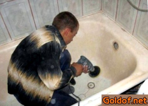- Подготовительная подготовка при применении данного метода пара отличается: исчезает необходимость в проведении шлифовки поверхности, так как довольно будет обработать ванну наждачкой, по окончании чего основательно сполоснуть ее горячей водой;