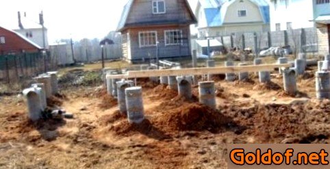 Небольшой вес конструкции разрешает устанавливать ее на столбчатый фундамент. Количество столбов находится в зависимости от размера бани и ее веса. В любом случае столбы должны быть под углами строения, под краями внутренних стенок и в местах их скрещения.