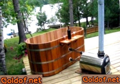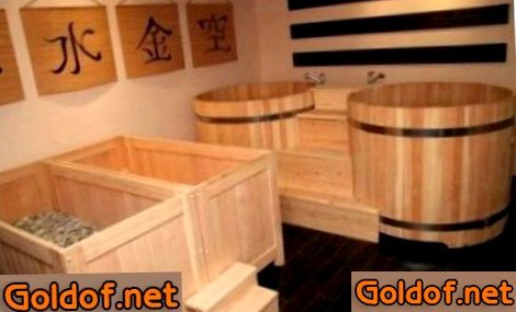 - Главным элементом японской бани есть деревянная бочка с водой, нагретой до определенной температуры (40-45 градусов по шкале Цельсия). Для производства используют деревянную породу, владеющую теплостойкими, дезинфицирующими и иммуностимулирующими качествами: алтайский кедр, лиственницу, дуб или кедр.