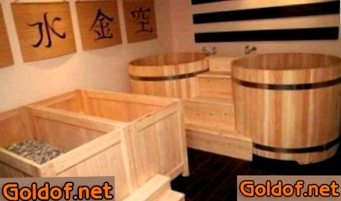 В случае отдельного строительства японская баня в обязательном порядке содержит два главных элемента. Это круглая бочка с водой, нагретой до 45 градусов Цельсия, и расположенной в древесным сидением – «Фурако» и заполненная тёплыми опилками емкость «Офуро». Под деньке «Фурако» располагают печку их нержавейки, которая и будет поддерживать температуру воды. Дно рекомендуется изготавливать из термодревесины, применяя финскую технологию.