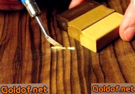 - Заделывая большой недостатков, паяльничком с толстым жалом разогревают не много мебельного воска. Размягченную, но не водянистую смесь накладывают на ремонтируемый участок. В случае если сломалась фигурная часть, то массой нужно попробовать повторить ее контур. В случае если заделывается щель на ровненькой поверхности, то заплата должна пара выступать. Это нужно чтобы после чего наждачкой выровнять и сгладить ее.