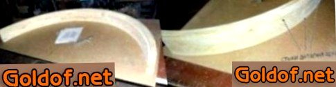 - Для высшей части конструкции необходимо сделать арочный наличник – выпилить из досок (толщина – двенадцать мм). В случае если одной доски не хватит, то его можно сделать из нескольких частей, а стык задекорировать фигурной накладкой.