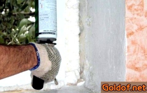 Чтобы не переместить подоконник с места при запенивании, на него рекомендуется поставить небольшой груз, например, пара емкостей с водой.