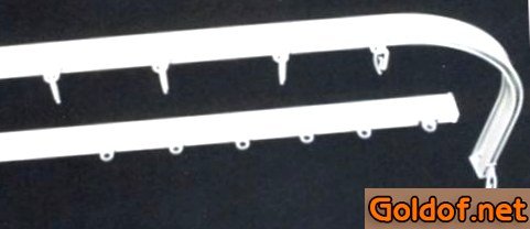 Рельсовые карнизы являют собой дюралевую или ПВХ-конструкцию с одним или несколькими желобками, по которым передвигаются ролики с крючками. Особенные заглушки предупреждают выпадение роликов из полости рельс.