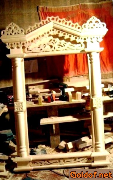 Размещение резных частей вдоль волокон дерева, защитит наличник от растрескивания. В особенности это относится к деревянной породе хвойных пород.