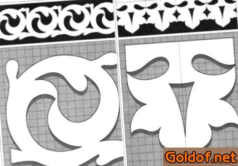 Трафареты можно сделать без помощи других или перенести набросок с уже готовых эскизов. Поначалу на заготовку наносится узор, после чего просверливается отверстие с помощью дрели и уже от него лобзиком вырезается подходящий орнамент. Позже, вырезанные наличники необходимо отлично отшлифовать наждачкой.