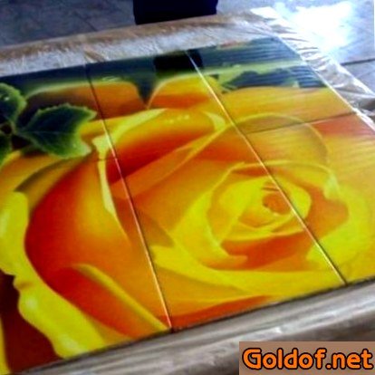 - В случае если прекрасно склеить не вышло и шов остался приметным, или находится более очевидный недостатков в виде скола, тогда на помощь придет цветная фотопечать. В данном случае нужно только подобрать плитку подходящего размера в магазине и принести ее и сломанную плитку в любой магазин, где делают фотопечать на кружке, одежке и т.д. Дизайнер перенесет набросок на компьютер и вернёт его, по окончании чего его нанесут на плитку. Так, окажется дешевый, но высококачественный ремонт, не требующий подмены художественной облицовки.