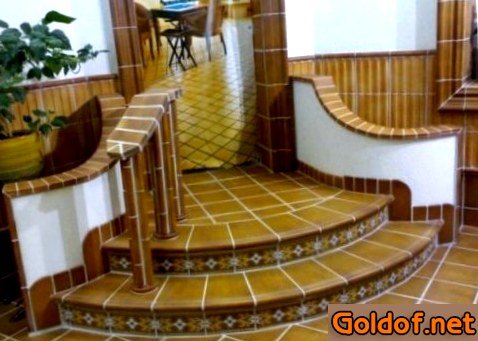 - Лучший размер глиняной плитки – 30*30 см или 30*60 см. В данном случае плитка соответствует размерам ступени и не испытывает недостатков в обрезке.