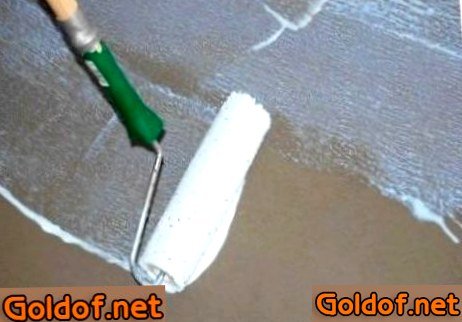 - Валиком нанести 2-3 слоя грунтовки на пол (поверхность должна всецело пропитаться).