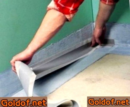 - Соединения пола со стенами и углы проклеить особенной лентой с герметичными качествами.