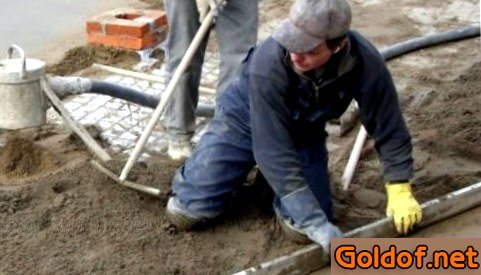 Полусухую стяжку пола цементом делают с добавлением особенного полимерного материала – пропиленовой фибры. Приготовьте такой раствор и подготовьте его для заливки. В согласовании с отзывам о полусухой стяжке пола, в ней должно находиться не достаточно воды, а исходя из этого самое основное правило при обустройстве полусухой стяжки — не «перестараться» с жидкостью.