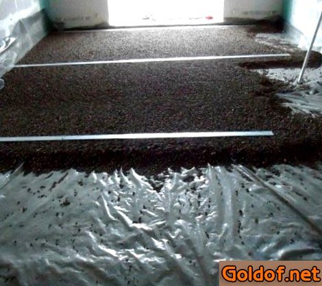 Позже рассчитываем керамзит в согласовании с формуле. На один см стяжки и на один метр квадратный площади нужно 10 л. керамзита, а на 5 см стяжку — 50 л материала.