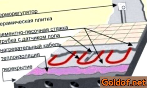 Электронный подогрев пола осуществляется средством особенного нагревающего термического кабеля, который монтируют под покрытием. Установка нагревательного элемента делается прямо в цементную стяжку, толщина которой должна быть порядка 3-5 см.