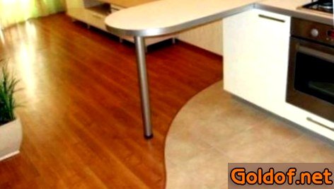 Необходимость одновременной укладки ламината и плитки возникает обычно в кухне-столовой. При таких критериях стыковка ламината и кафельной плитки на участке столовой делается естественным способом. В кухонной рабочей местности, которая быстро загрязняется и характеризуется завышенной влажностью, советуют на пол укладывать глиняную плитку. Такое разделение может выполняться с применением подиумов (маленьких возвышений). Куда труднее выполнить переход ламинатного покрытия в плитку на этом же уровне.