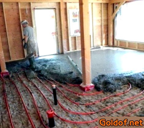 Устройство стяжки теплого водяного пола, выполненной из бетона