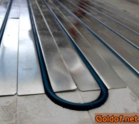 8. Установите особенные дюралевые пластинки под трубы. Основная функция пластинок — рассредотачивание тепла по площади пола.