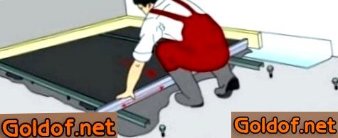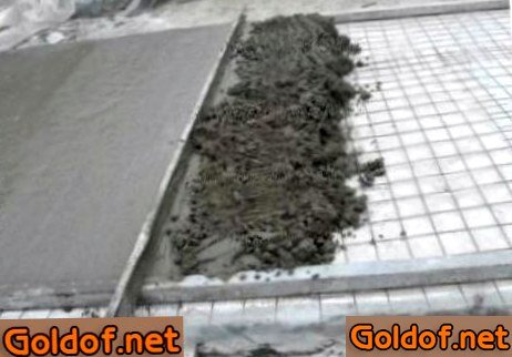- К основанию профиль закрепляется на цементный раствор, другими словами вдоль каждой направляющей, через 30-40 см накладывают лепками смесь, сверху на нее устанавливают маячковый профиль, вместе с этим его необходимо просто вмять для более крепкого закрепления. В обязательном порядке сглаживать любой с помощью строительного уровня. Высота должна соответствовать запланированной высоте стяжки (1-8 см).
