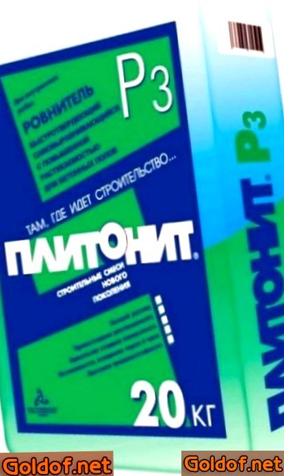 - «Плитонит Р1 easy» — смесь, для неотёсанного выравнивания цементных оснований и других цельных поверхностей, подходит для устройства полов с уклоном, и для укладки кафеля, паркета и может выступать базой для наливных полов. Рекомендуемая толщина слоя от один до 5 см. Раствор употребляется при ведении работ в и снаружи строения, есть трещеностойким и морозостойким. Фасуется в бумажные упаковки по 25 кг, средняя удельная стоимость от двести руб.