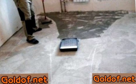 - Имеющиеся на основании глубочайшие, более 1-2 см, трещины или ямки заделываются средством такого же выравнивателя, который и подразумевается использовать в дальнейшем. В случае если имеются через чур высочайшие цементные выступы или бугорки, то их сбивают молотком или перфоратором.