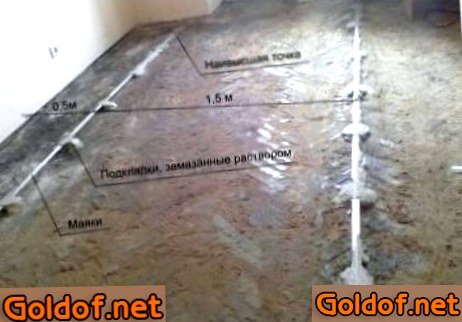 - Для наклонного пола или заливки основания с уклоном;