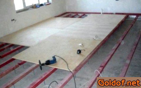 Выравнивание пола страничками фанеры по лагам