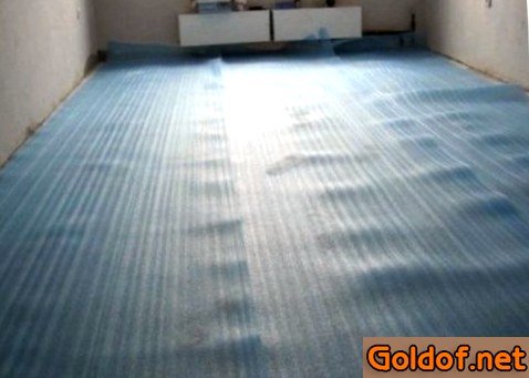 - Просвет между направляющими приблизительно должен быть равен их ширине. Поверх их, начиная с далекого конца комнаты, настилается слой гидроизоляции.