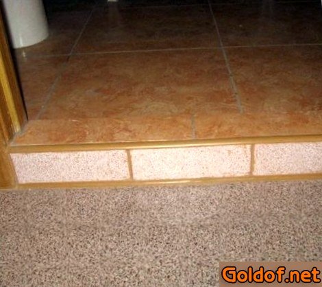 Еще одним вариантом для формирования порога в ванной выступает его облагораживание с помощью глиняной плитки. Вместе с этим сначала устанавливают обыденную плитку, а после чего сверху приклеивают очередной слой, в виде порога. Для обрамления торцевых участков используют уголки.