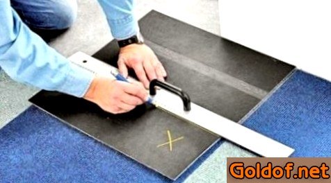 У порога необходимо прибить временную планку, по которой будут выравниваться края напольного покрытия. Разрезать ковровую плитку можно строительным ножиком. Надрез лучше проводить с тыльной стороны материала. При укладке плиток необходимо смотреть за направлением ворса. Почти всегда покрытие укладывается в одном направлении, но можно экспериментировать и создавать необычный дизайнерский набросок, изменяя вектор нитей.