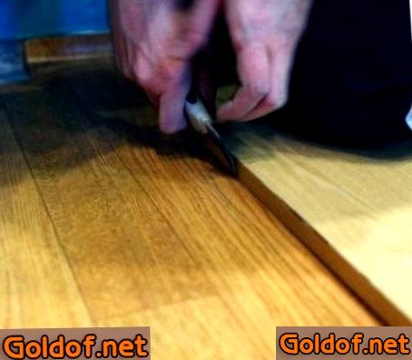 Соединения следует прорезать только по истечению 40 восемь часов по окончании укладки линолеума. Для этих целей понадобится железная долгая линейка и особенный канцелярский ножик. Смотрите за ровностью прорезания шва, пытайтесь удалить все избытки линолеума сразу, а на стыке установите доску и груз, пока линолеум вполне не подсохнет.