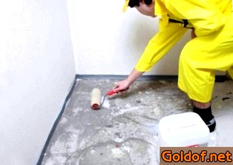 - Специалисты не рекомендуют использовать окрасочный способ на цементном основании, так как срок его работы не превосходит 3-6 лет. Поверх стяжки в ванной комнате лучше пользоваться обмазочной гидроизоляцией, более известные производители: Юнис, Кнауф, Церезит, Ивсил, Перфекта, Глимс и другие. Для изготовка необходимо сухую смесь разбавить водой по аннотации, размешать и нанести на пол с помощью валика или кисти.