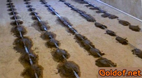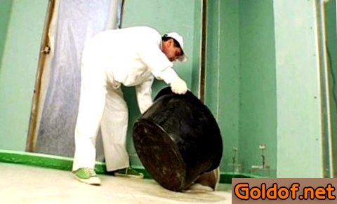 - По окончании того как раствор, удерживающий маячковую систему, совершенно затвердеет, приступают к выполнению стяжки. Сухая смесь разводится по аннотации (порошок засыпается в воду комнатной температуры и основательно размешивается строительным миксером или дрелью со особенной насадкой). По окончании первого размешивания раствор следует бросить на 5-10 мин. И опять перемешать, а, после чего, перебегать непосредственно к заливке.