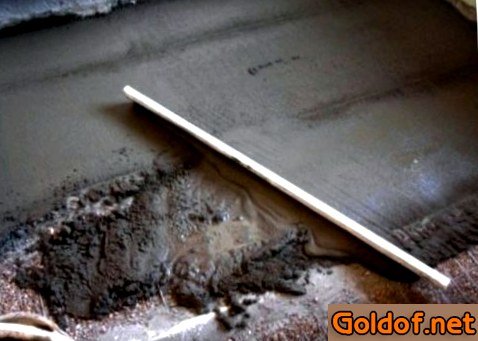 - Раствор необходимо заливать выше уровня маяка на 0,5-1 см, а после чего с помощью правила разгладить в один уровень с направляющими, собрав лишнюю смесь. Правило должно упереться краями на направляющую и, двигая инструмент на себя вдоль маяка, с небольшим колебанием вправо-влево, разравнивается слой под ним. В случае если консистенции не хватает и остаются провалы, то раствор подливается и опять разглаживается. В то время, когда один просвет залит, его край просто увлажняется (для наилучшей адгезии) и заливается 2-ой участок и без того позже, пока не будет заполнено весь обьем. В нескольких местах необходимо проткнуть стяжку проволокой, чтобы выпустить излишний воздушное место, который в дальнейшем может сломать всю произведенную работу.