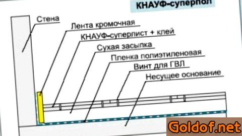 Более пользующейся популярностью компанией создающей сборные сухие стяжки считается компания «Кнауф».