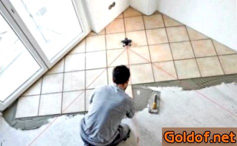 - Советы мастеров по укладке керамогранита В случае если набросок рисунка вашего напольного покрытия подразумевает создание симметричного узора, установка керамогранитной плитки лучше начинать с середины комнаты, протягивая бечевку по полосы симметрии;