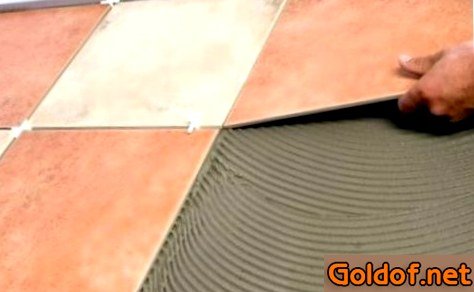 - Смотрите за тем, чтобы в клеевой прослойке между полом и керамогранитной плиткой не создавались пустоты, что предупредит растрескивание плитки в процессе эксплуатации. Взятую в процессе укладки клеевую поверхность обрабатывают зубчатым шпателем;
