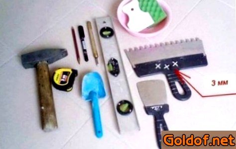 - Легкий и зубчатый шпатель, и резиновый мастерок;