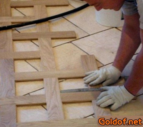 Позже начинается укладка паркета, он обязан иметь вид елочки. 1-ые 7-8 частей планируют раздельно, а после чего инсталлируются, так как установка первых частей паркета сверхсложный: не просто установить доску без скольжения и точки опоры.