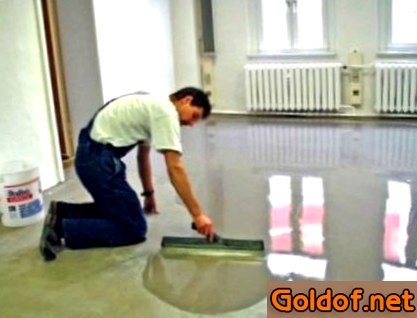 — самонивелирующаяся стяжка пола: вид стяжки пола по маякам, в качестве материала используются покупные самонивелирующиеся консистенции на гипсовой основе. Сглаживает выпуклости от нескольких мм до 5 см. Но, из-за солидной цены, употребляется для выравнивания, малых перепадов высот, оставшихся по окончании выравнивания пола полусухой или цементной стяжкой, делая пол быстрее не ровным, а гладким. При заливке пола довольно быстро высыхает, исходя из этого просит умений и опыта. Из-за собственной хрупкости, ходить по готовому покрытию пола не надо из-за его возможного выкрашивания, просит быстрой организации чистового пола. По данной причине, самонивелирующаяся стяжка организуется перед укладкой чистового пола.