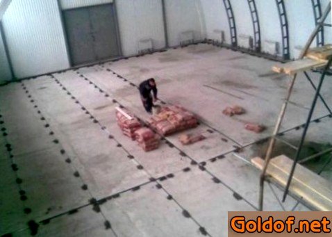 По окончании того, как вы окончили предварительные мероприятия, приступите к установке разделительных жилок, наличие которых обеспечит огромную стойкость напольного покрытия. Если вы формируете однотонное напольное покрытие, установку разделителей делают аналогично той, что осуществляется в процессе монтажа цементной стяжки, другими словами с шагом, равным 1,5 м. При условии, что уровень пола не будет быть больше 25 мм, в качестве более подходящих разделителей рекомендуется использовать квадратные трубы поперечником размерами 25×25 мм.