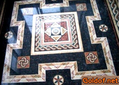 - Установка мозаичного напольного покрытия есть довольно накладным, что обосновано более большой ценой мраморной крошки, пара превосходящей цены более традиционных материалов. Но стоимость мозаичного пола не считая этого находится в зависимости от количества и трудности декоративных частей.