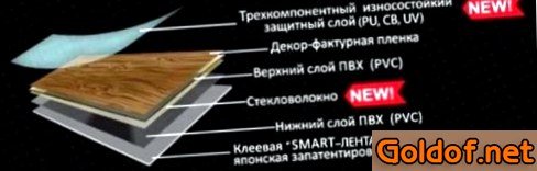 - Подложка ламинита из винила покрыта клеящим составом или smart-лентой.