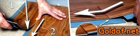 Совет. для аккуратной отделки колон, радиаторов отопления и ниш производится подрезка панелей по шаблону. Лекало необходимо сделать без помощи других – сделать четкие расчеты, нарисовать контур на картоне и вырезать. В случае если шаблон всецело подходит, то по примеру вырезают отверстие в ламинате.