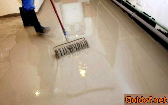 По окончании заливки раствора правилом или шпателем он выравнивается совершенно. Средством игловатого валика или щетки с жёстким долгим ворсом убираются пузырьки, какие возникают в материале. Необходимо 1-ые пара дней по окончании выравнивания пола придерживаться температурного режима, что указан изготовителем, избегать сквозняков и прямых солнечных лучей.